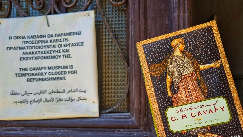 “It is always Alexandria. You walk a bit / Down the straight road that ends at the Hippodrome / And you’ll see palaces and monuments that awe you. / No matter how much damage it has suffered in wars, / No matter how diminished, it is always a wonderful city. / And then with excursions and books, / And various studies, time passes…” — C.P. Cavafy, Exiles