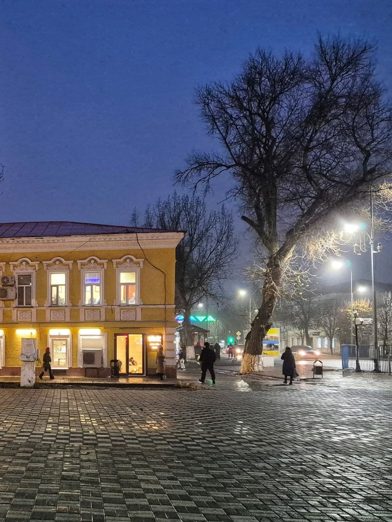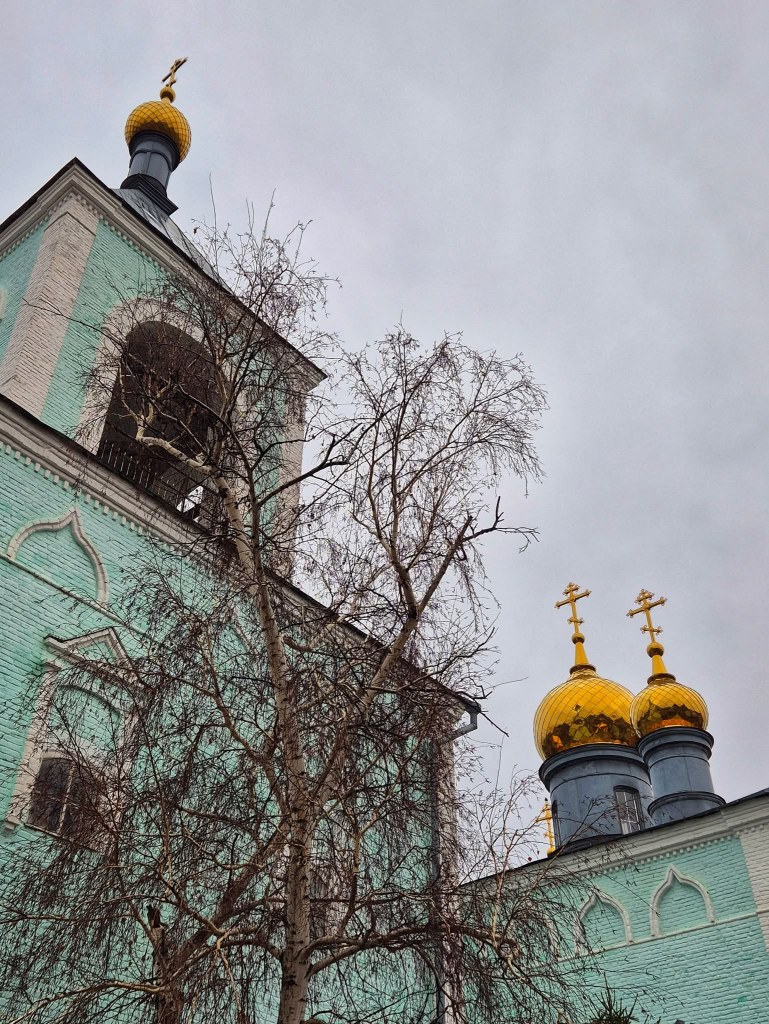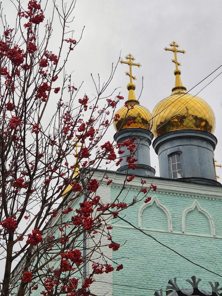 The city is now descending into winter. At 9:00 A.M., the sky is unlit, and even at noon, the sun barely makes its presence felt. But I love strolling around despite the dark and the freezing temperature and seeing the onion domes of Orthodox churches appear through the mist, adorable babushkas wrapped in headscarves who are up before everyone else, and the warm lights emanating from old windows that reveal hidden coffee shops that offer respite from the cold. The baristas do not speak English; hardly anyone does, but they have smiles that translate enough warmth to this strange, shivering girl with a book.